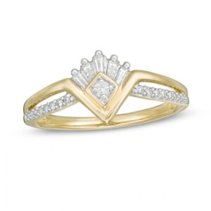 1/10 CT. T.W. Diamond Princess Tiara Ring in 10K Gold:1/10 CT. T.W. Diamond Princess Tiara Ring in 10K Gold